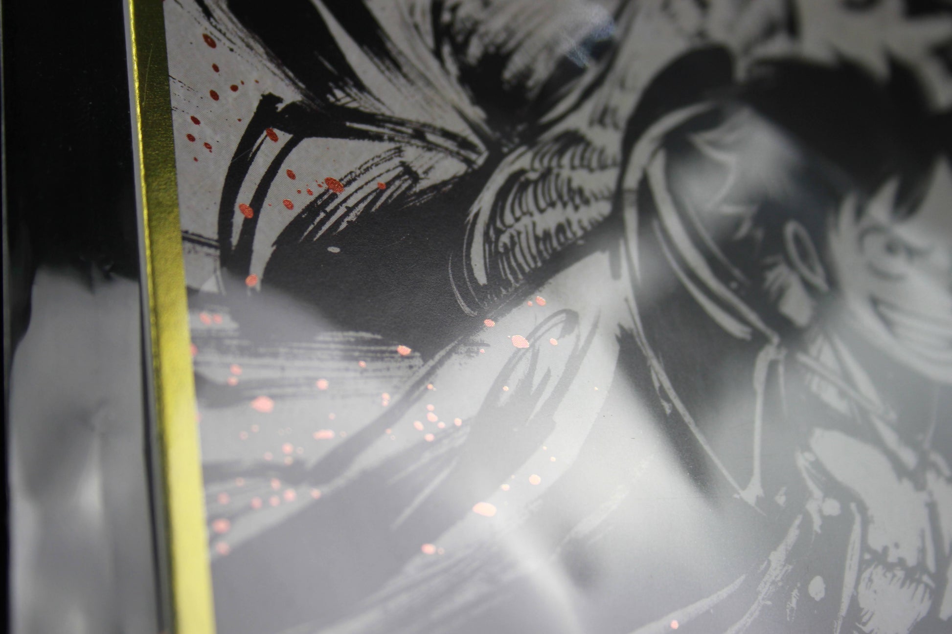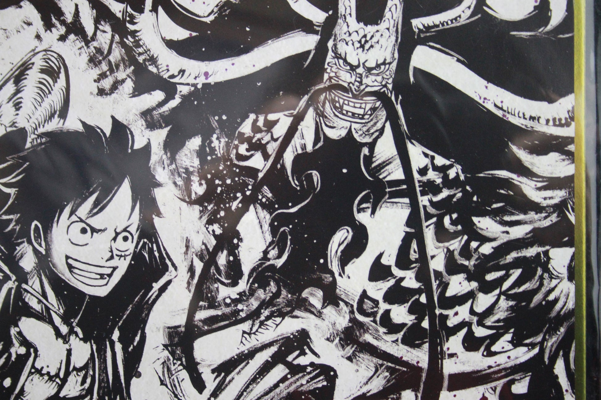 The sumi-style artwork combined with the metallic shine creates a mesmerizing visual effect. The battle between Luffy and Kaido feels alive and powerful, making this art board a treasured piece in my collection. It’s the perfect blend of tradition and modern anime flair.