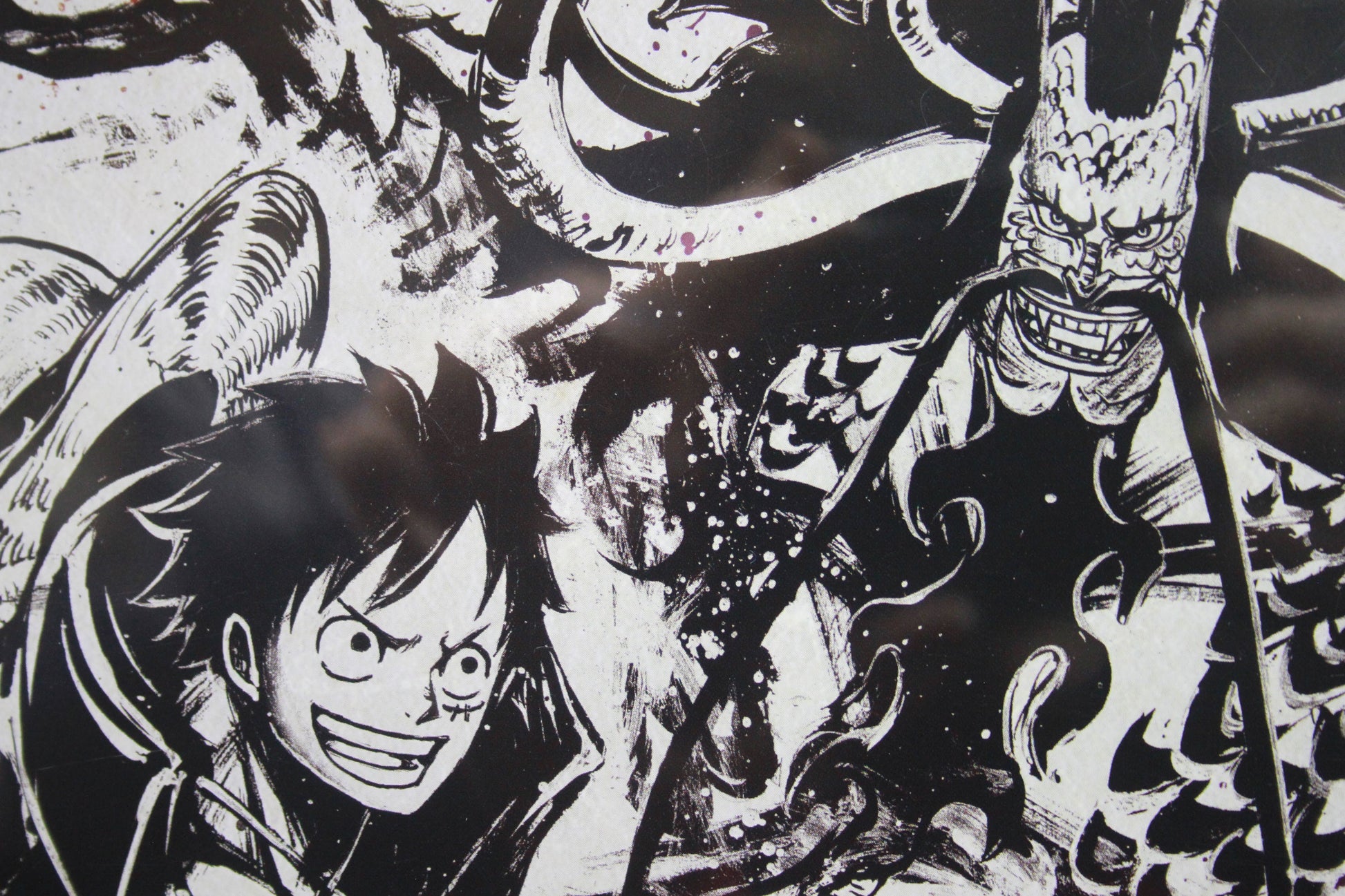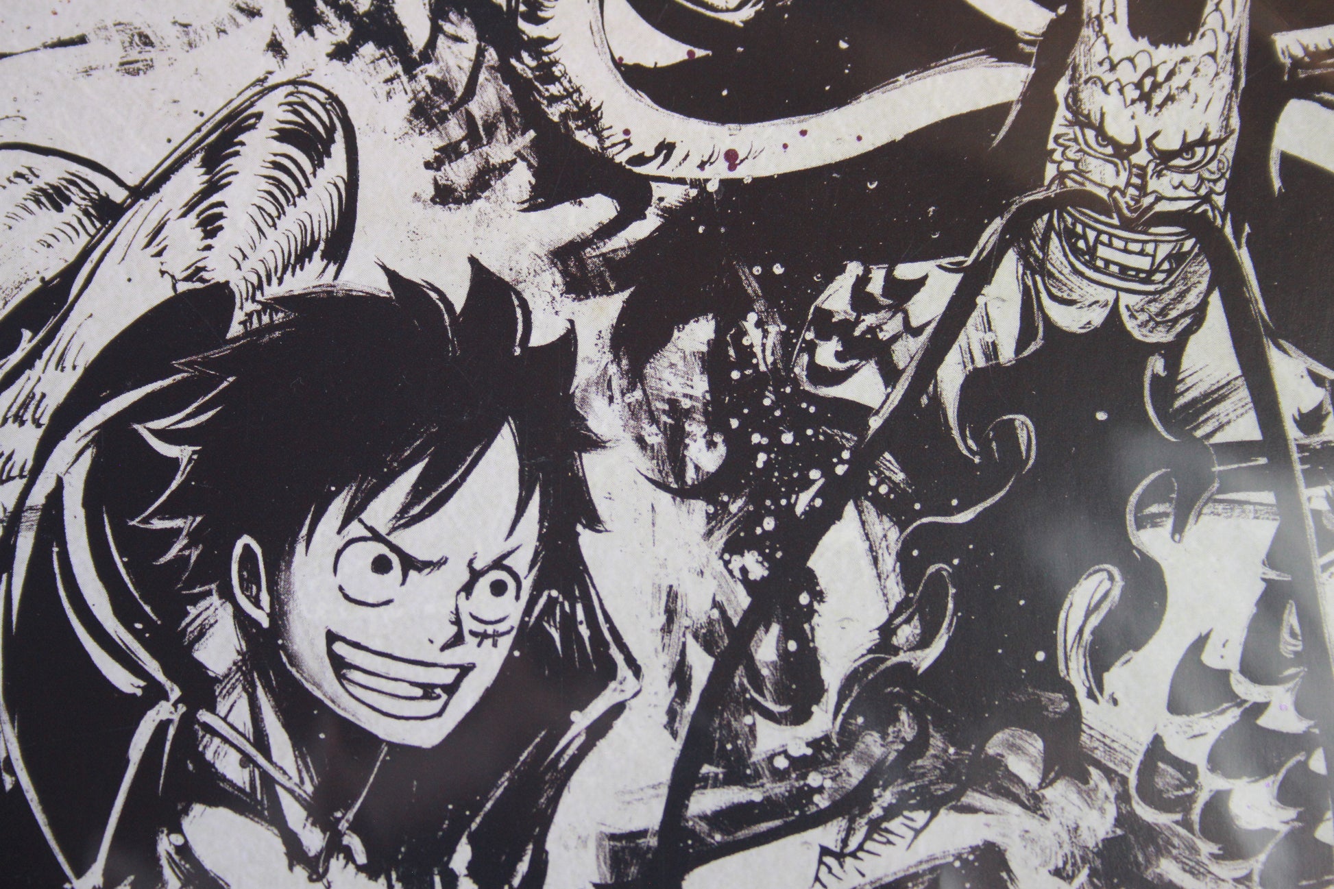 Sumi-style (Japanese ink wash) illustration of Luffy vs Kaido