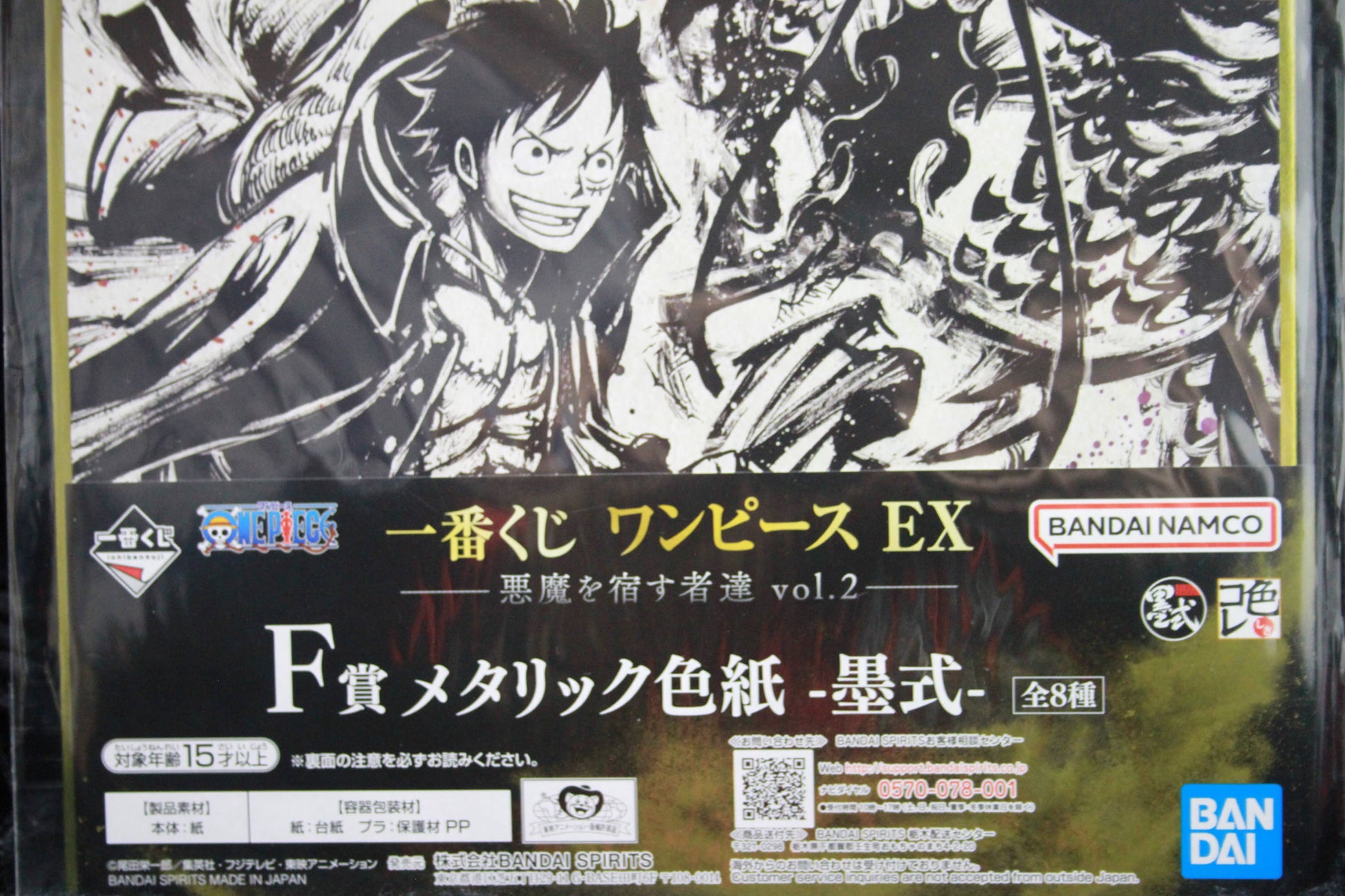 Featuring Monkey D. Luffy facing off against Kaido, this Vol.2 edition from Ichiban Kuji EX [F] x BANDAI captures the raw intensity and traditional Japanese ink art flair of the iconic battle. The metallic finish adds a shimmering depth that makes this piece a standout in any One Piece collection.