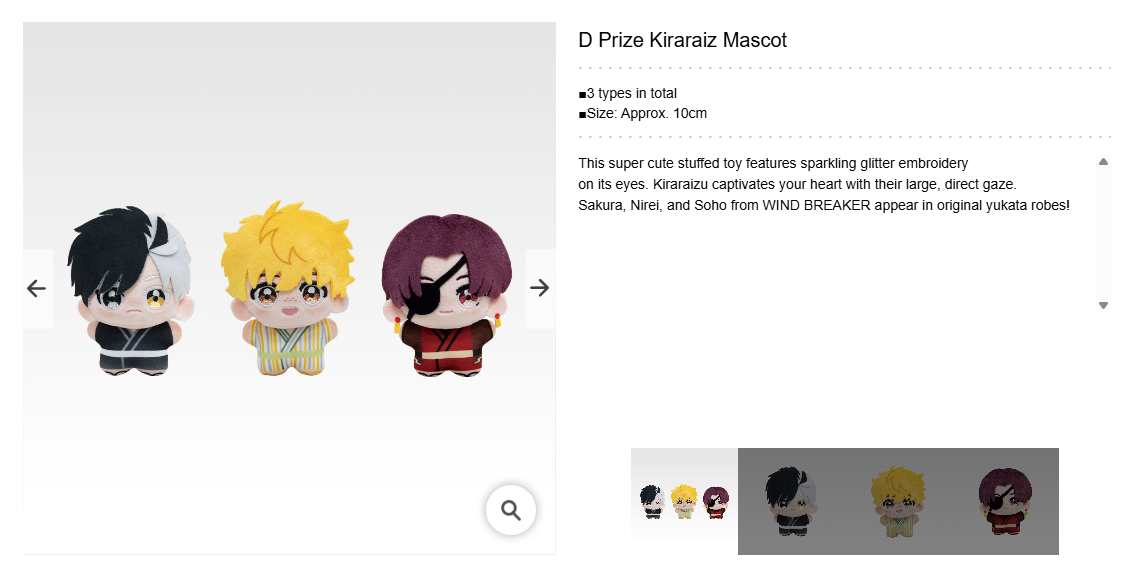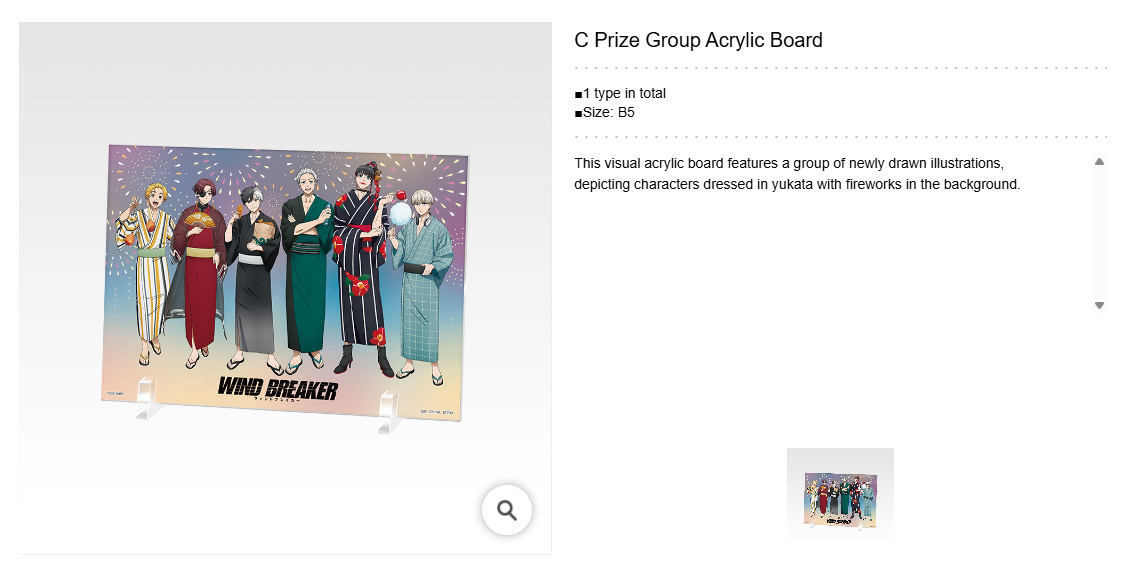 1 to 3 ICHIBAN KUJI Prize(s) from the WIND BREAKER -The Town Hero and the Festival- series, tiers A to J.