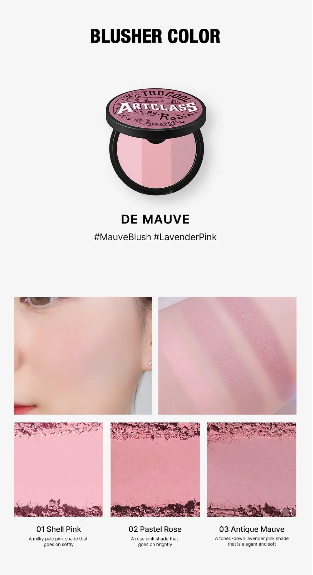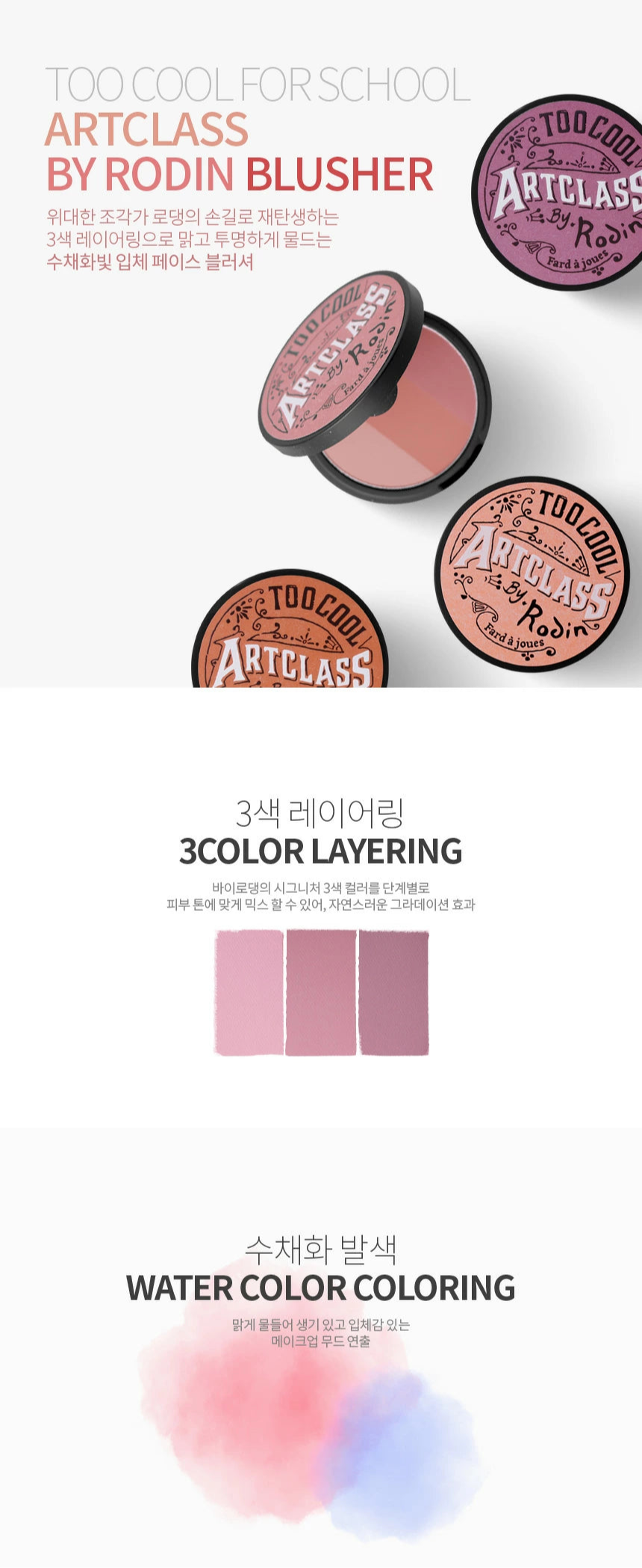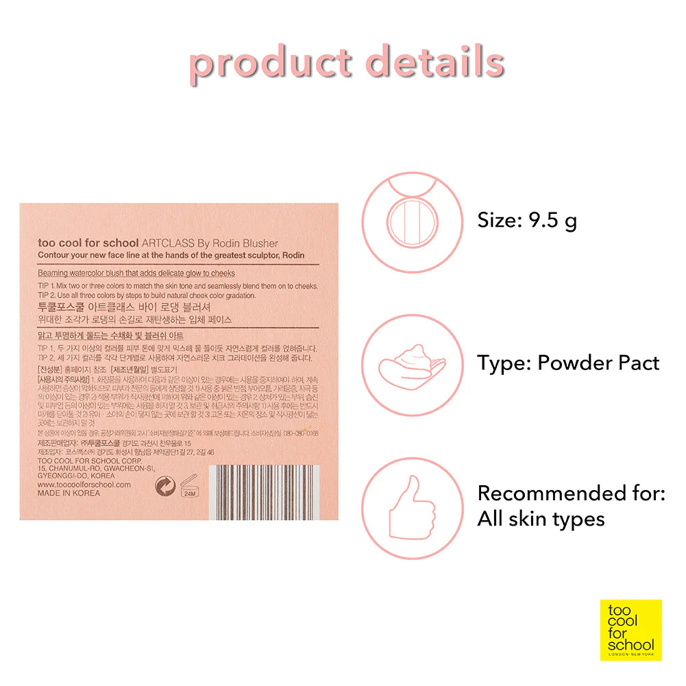 ARTCLASS BY RODIN BLUSHER – Blush – 3 colors Blending Shades – Face, Brows & Nose – Made in Korea – 0.33oz ( 9.5g) | TOO COOL FOR SCHOOL