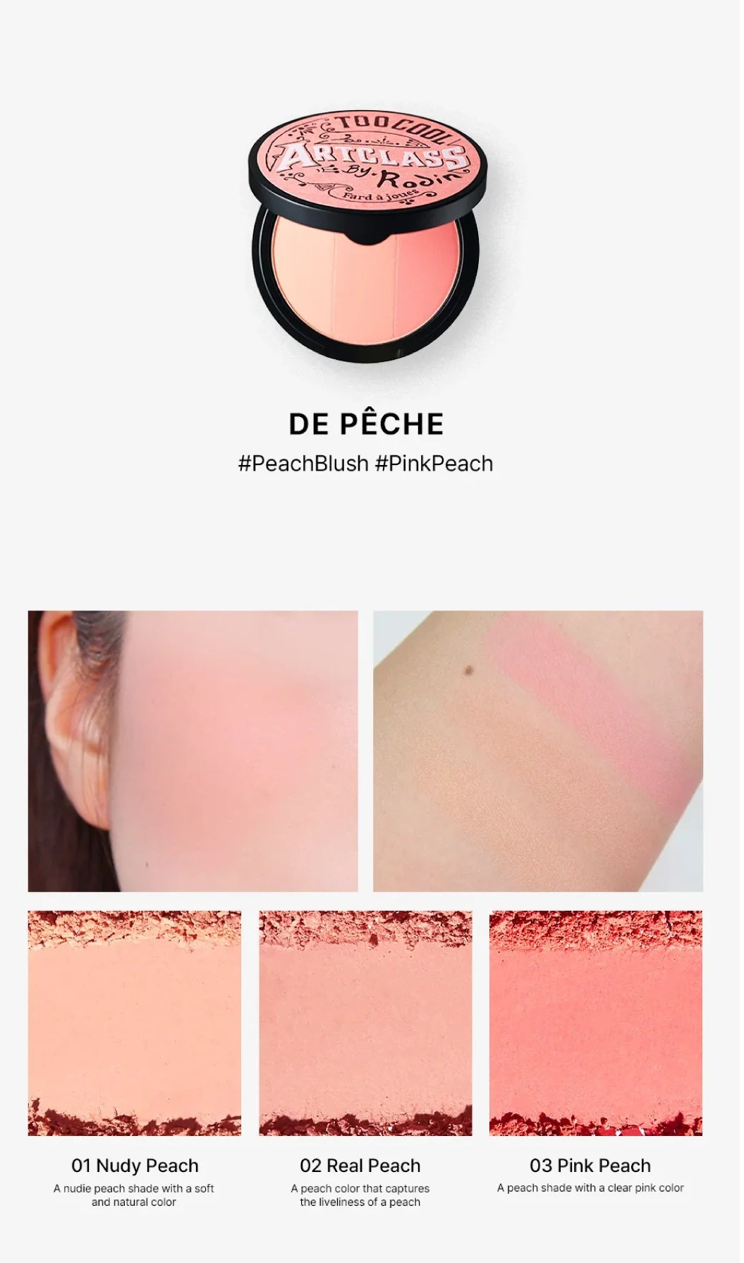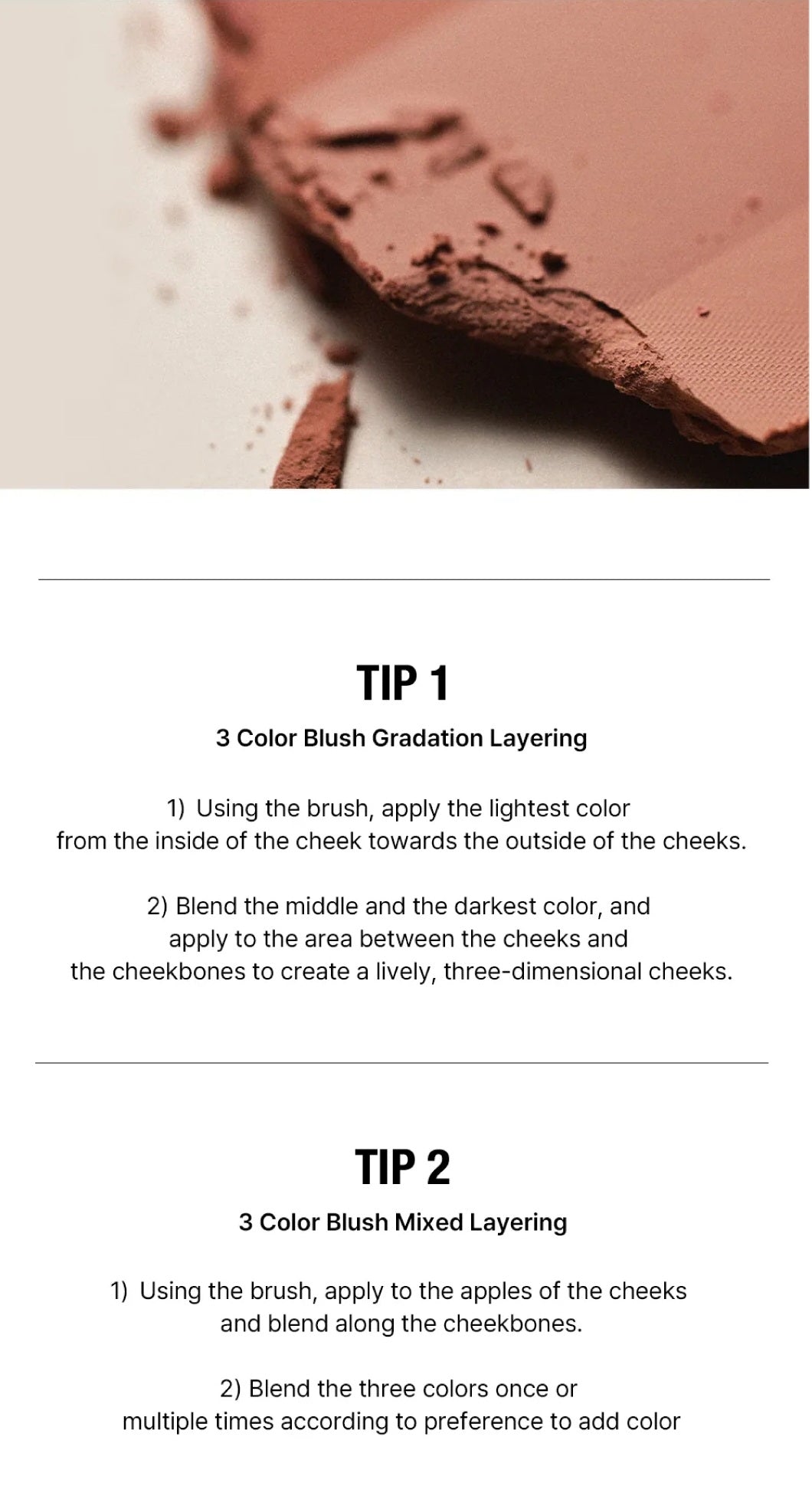 Soft, natural pink-to-peach tones for a healthy flush, blending seamlessly for a gradient look or precise sculpting.