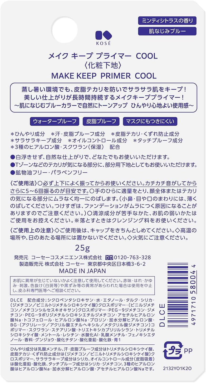 MAKE KEEP – Cosmenience Make Keep Primer COOL – Reduces Oily Glimmer from Excess Sebum – Makeup Base Layer – Keeps Makeup from Running – 0.9 oz (25 g) | KOSE COSMETICS